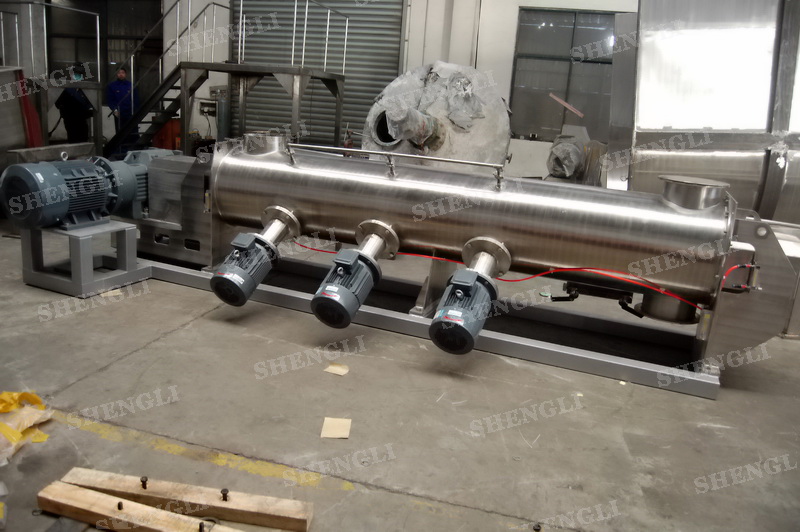 描述:單軸連續式攪拌機臥式安裝,進行連續式生產模式,推進槳葉配合高速飛刀有效打散、混合物料。設備主軸、飛刀主軸采用氣密封,杜絕粉料泄露。設備配置液體噴頭,可霧化加液。