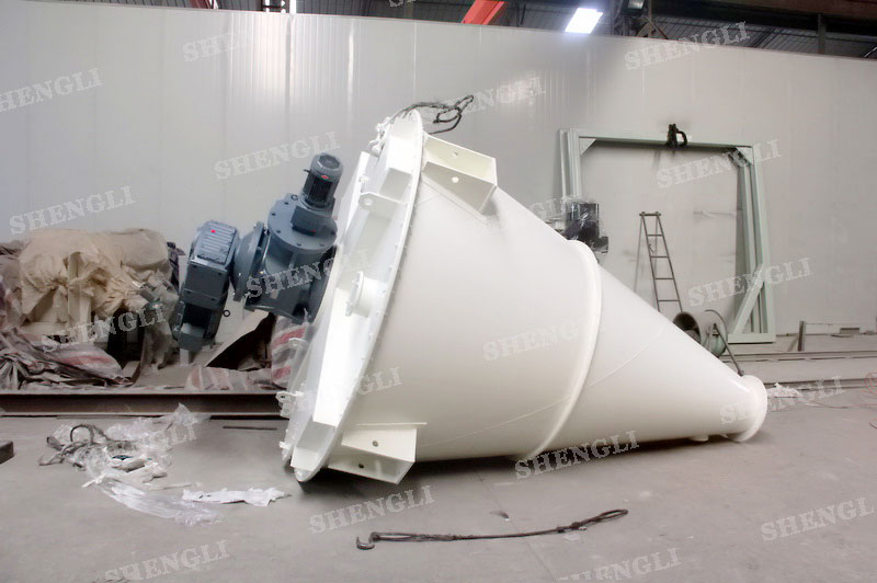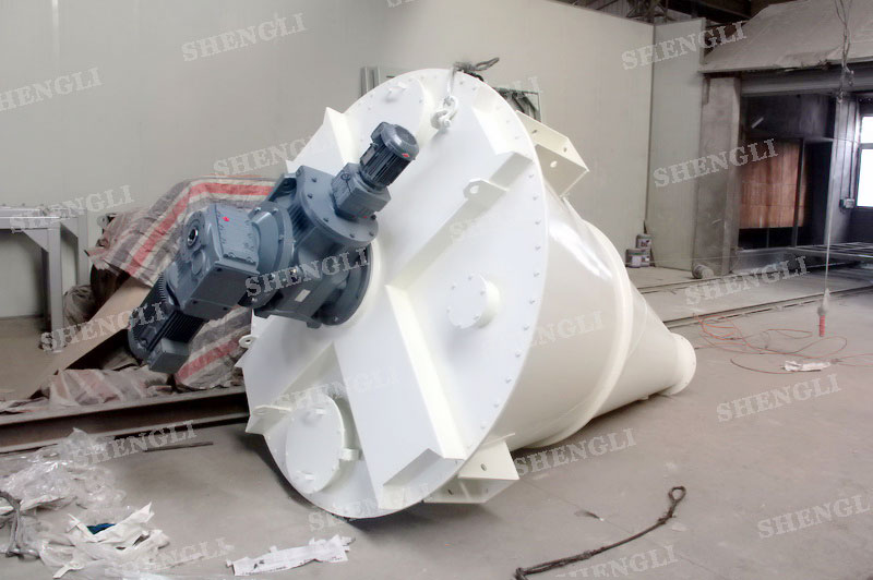 描述:錐形混合設(shè)備內(nèi)部安裝非對(duì)稱(chēng)傾斜螺旋,雙螺旋自身旋轉(zhuǎn),提升物料,并有公轉(zhuǎn)減速箱驅(qū)動(dòng),沿錐體中心軸公轉(zhuǎn),360度攪拌物料,擁有非破壞性攪拌以及快速且無(wú)殘留卸料的特點(diǎn)。該設(shè)備配置高端SEW品牌減速機(jī),設(shè)備公轉(zhuǎn)、自轉(zhuǎn)驅(qū)動(dòng)分離、內(nèi)設(shè)中心軸線噴液噴頭、內(nèi)外表面做防銹處理,架設(shè)人孔、排氣口等設(shè)置。