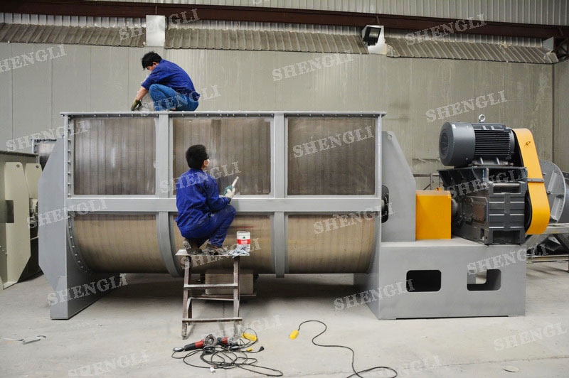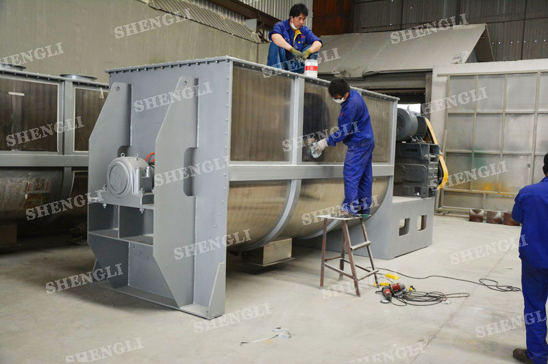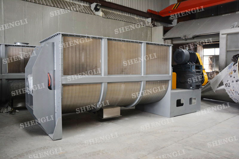 工作原理:臥式攪拌機采用U型筒體,內設平行主軸,主軸上安裝若干傾角式槳葉刀,不僅能快速高效的攪拌物料,且不會破壞物料,不會卡料。