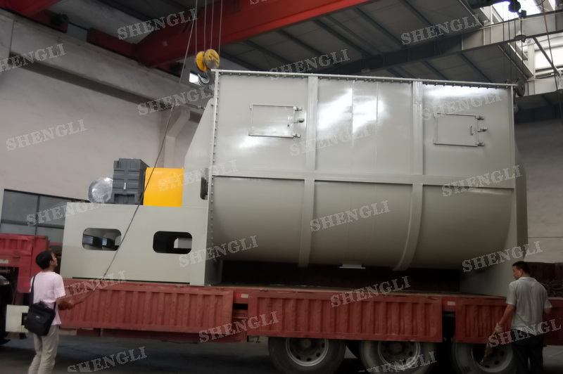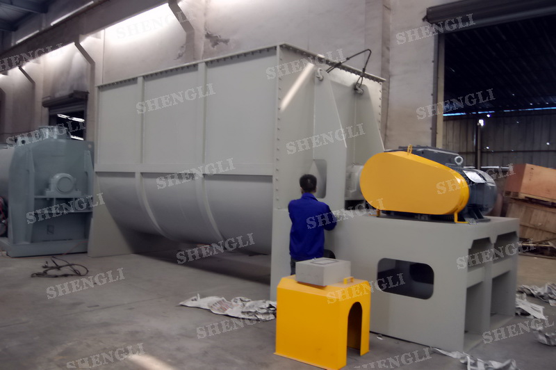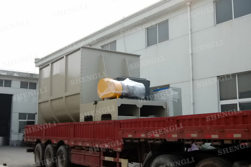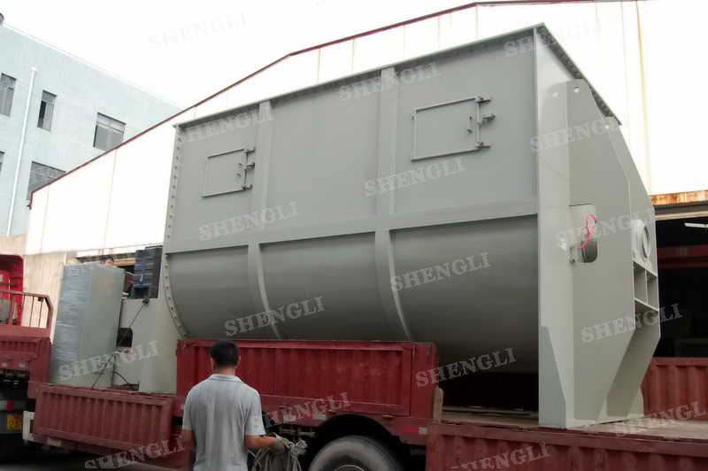 工作原理:螺帶攪拌設備采用U型筒體,內裝平行主軸,主軸上安裝正反雙向的盤條螺帶,不同維度螺帶分內螺帶與外螺帶,物料在螺帶的驅使下反復參混,能夠快速高效的混合。