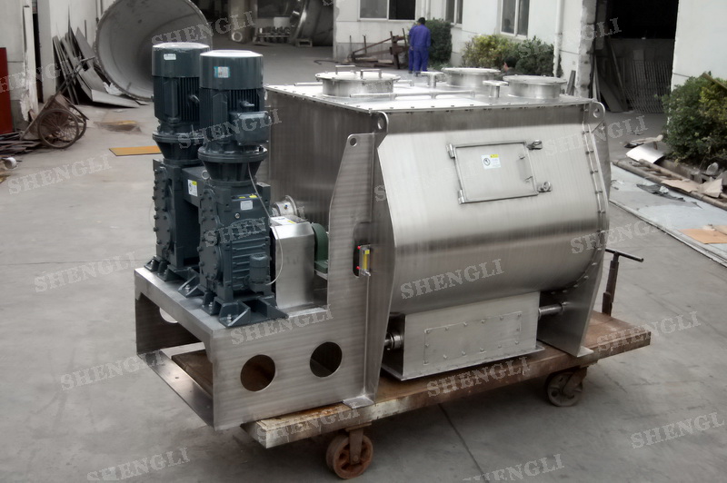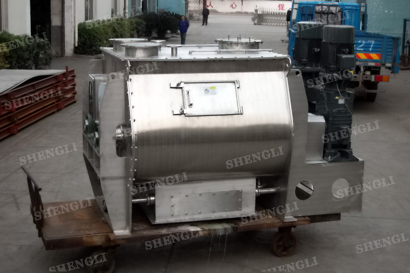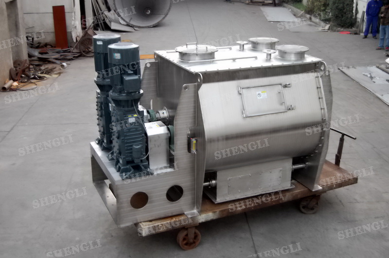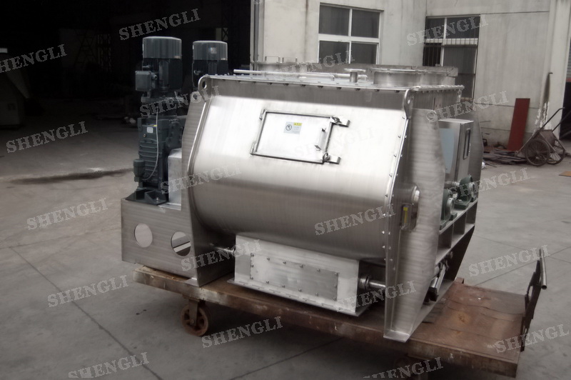 工作原理:無重力雙軸混合機(jī)采用雙U型筒體,內(nèi)裝平行的雙主軸,主軸設(shè)有對(duì)稱的多組槳葉,其雙軸的運(yùn)行軌跡部分重合形成嚙合空間,雙軸在受雙電機(jī)同步驅(qū)動(dòng),同步的對(duì)稱向外翻攪物料,致使物料能夠達(dá)到瞬間失重點(diǎn),該設(shè)備具備高效物料無差別的混合能力。