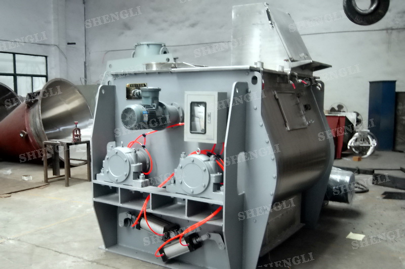 工作原理:無重力雙軸攪拌機采用雙U型筒體,內裝平行的雙主軸,主軸設有對稱的多組槳葉,其雙軸的運行軌跡部分重合形成嚙合空間,雙軸在受雙電機同步驅動,同步的對稱向外翻攪物料,致使物料能夠達到瞬間失重點,該設備具備高效物料無差別的混合能力。