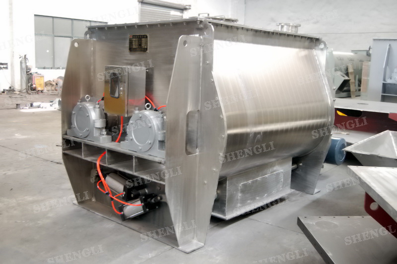 工作原理:無重力混合機采用雙U型筒體,內裝平行的雙主軸,主軸設有對稱的多組槳葉,其雙軸的運行軌跡部分重合形成嚙合空間,雙軸在受雙電機同步驅動,同步的對稱向外翻攪物料,致使物料能夠達到瞬間失重點,該設備具備高效物料無差別的混合能力。