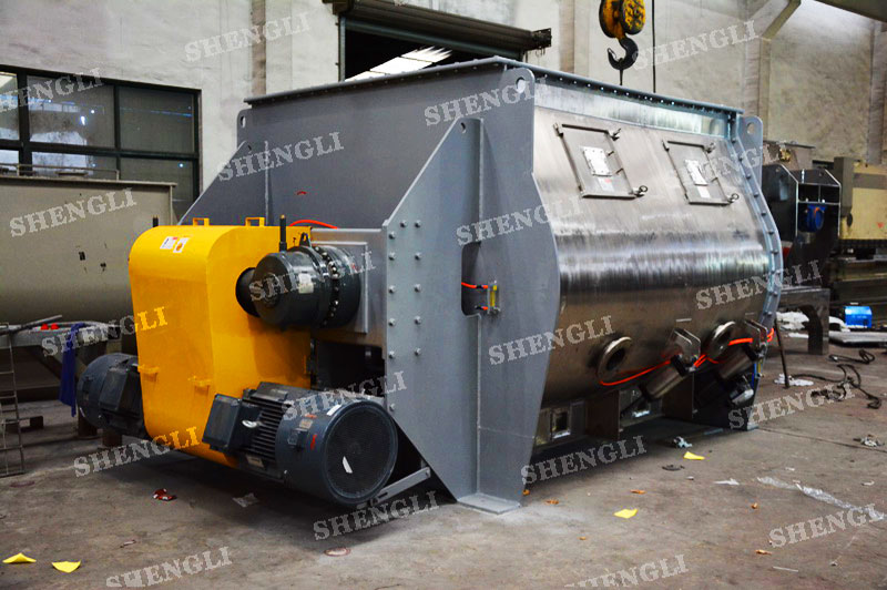 工作原理:臥式雙軸攪拌機(jī)采用雙U型筒體,內(nèi)裝平行的雙主軸,主軸設(shè)有對稱的多組槳葉,其雙軸的運(yùn)行軌跡部分重合形成嚙合空間,雙軸在受雙電機(jī)同步驅(qū)動(dòng),同步的對稱向外翻攪物料,致使物料能夠達(dá)到瞬間失重點(diǎn),該設(shè)備具備高效物料無差別的混合能力。